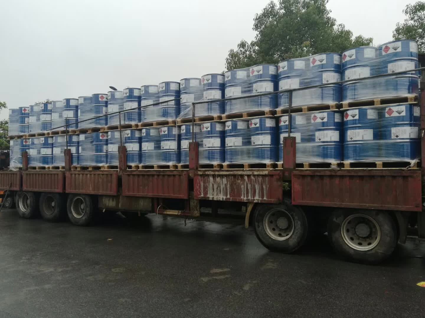 南京爾天化工有限公司準(zhǔn)備發(fā)往客戶的160桶叔丁胺,清晨在山東淄博廠區(qū)裝車,即將出發(fā)。